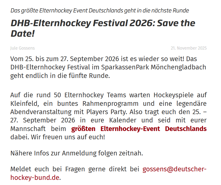 DHB Elternhockey Festival 2026